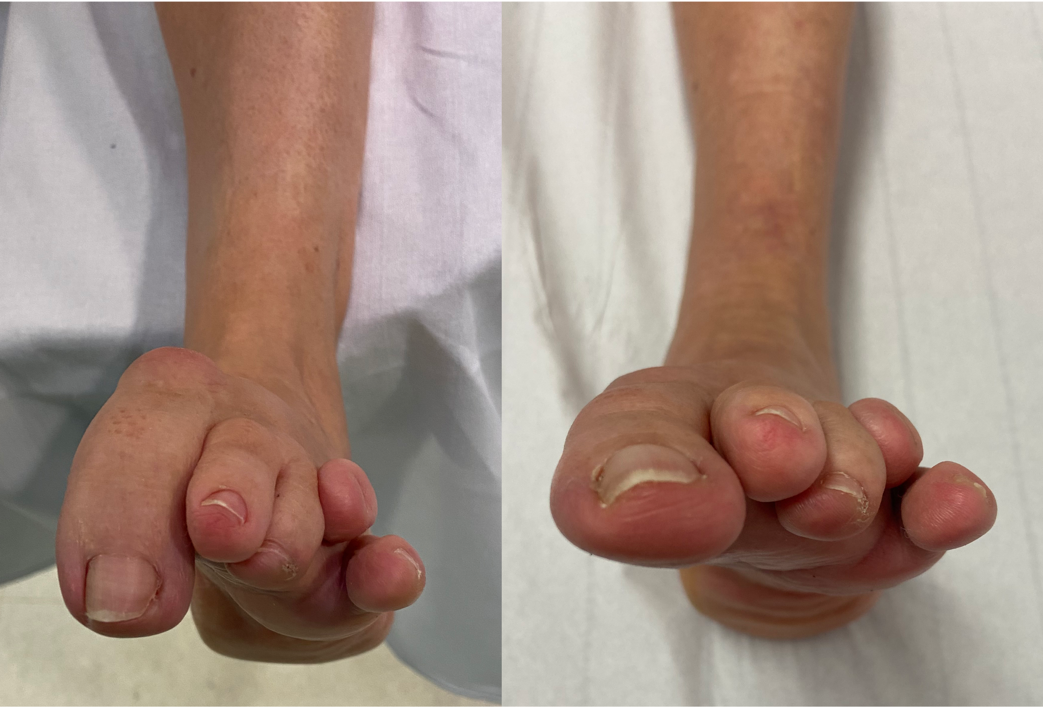 Os presentamos un caso de deformidad neurológica en el pie de un paciente con polio. Se trata de una deformidad que incapacitaba la marcha por un hiperapoyo en la región lateral del pie. A la exploración y, confirmándolo con radiografías, se observaba una elevación del primer radio desde la articulación naviculocuneiforme que provocaba una supinación del antepié. La causa es una predominancia de la acción del tendón tibial anterior frente a otros tendones más afectados por la polio.